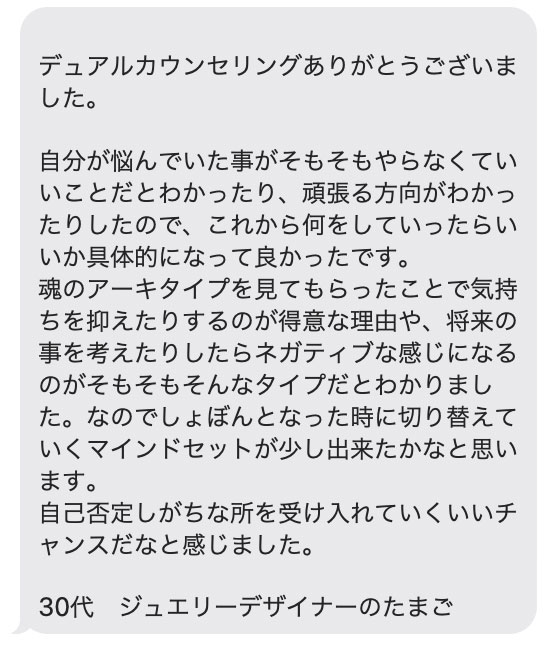 後に、魂のアーキタイプというコンセプトを知って、Yurikoさんのタイプが分かり、本当に色々なことが納得できたんです。